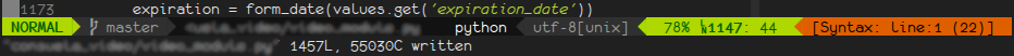 Que é mais bonito, mas ainda continua mostrando as mesmas informações. Mais pra frente veremos ã integração com “Fugitive” (um plugin para VIM para Git) e o Syntastic (para validar o código com ferramentas externas) e como ambos são suportados pelo Airline, você terá todas as informações ao alcance do rodapé da janela.